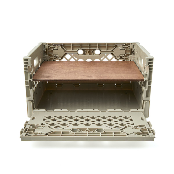 <플립박스> 또는 <캐리어박스>의 위쪽에 체결하고 <플립박스 랙> 위에 나무선반을 올려 책상으로, 패브릭 쿠션인 <플립박스 스툴>를 올려 의자로 사용할 수 있을 뿐아니라 <플립박스>를 하나 더 얹어 선반으로도 쓸 수도 있습니다. <플립박스 랙>을 체결해 여유롭게 생긴 공간에는 <플립박스>보다 큰 물건들을 넣을 수도 있습니다. *<플립박스 랙>은 <캐리어박스>와도 호환되도록 만들어졌습니다. <플립박스>에 체결할 때는 조금의 이격이 있습니다