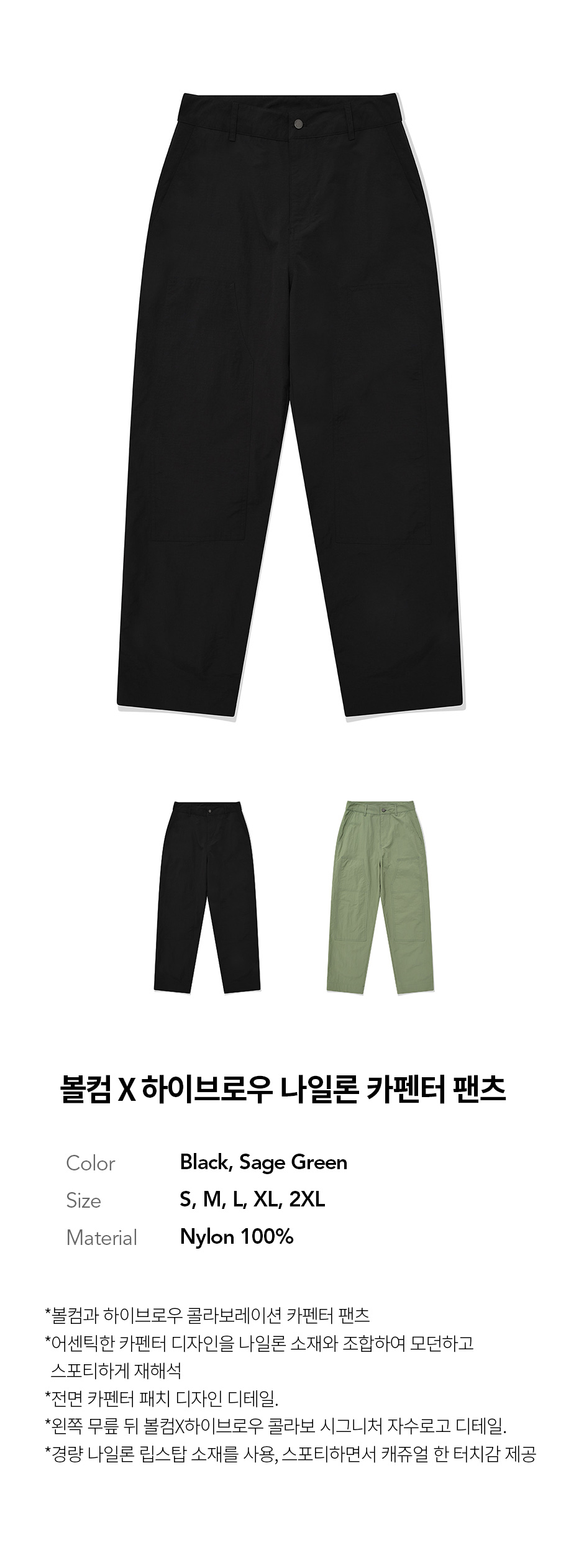 볼컴 X 하이브로우 나일론 카펜터 팬츠 : 세이지 그린